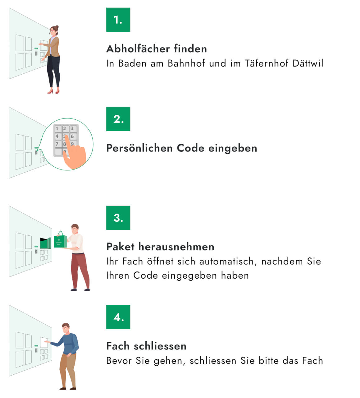 Am Standort Baden konnten wir bereits erste Erfahrungen sammeln – seit dem Sommer 2021 bietet nun auch unsere Apotheke in Dättwil diesen Service an. Sicher kennen Sie bereits vergleichbare Systeme. Beispielsweise von der Garage, wenn Sie den Autoschlüssel nach Geschäftsschluss aus dem Schliessfach abholen können.