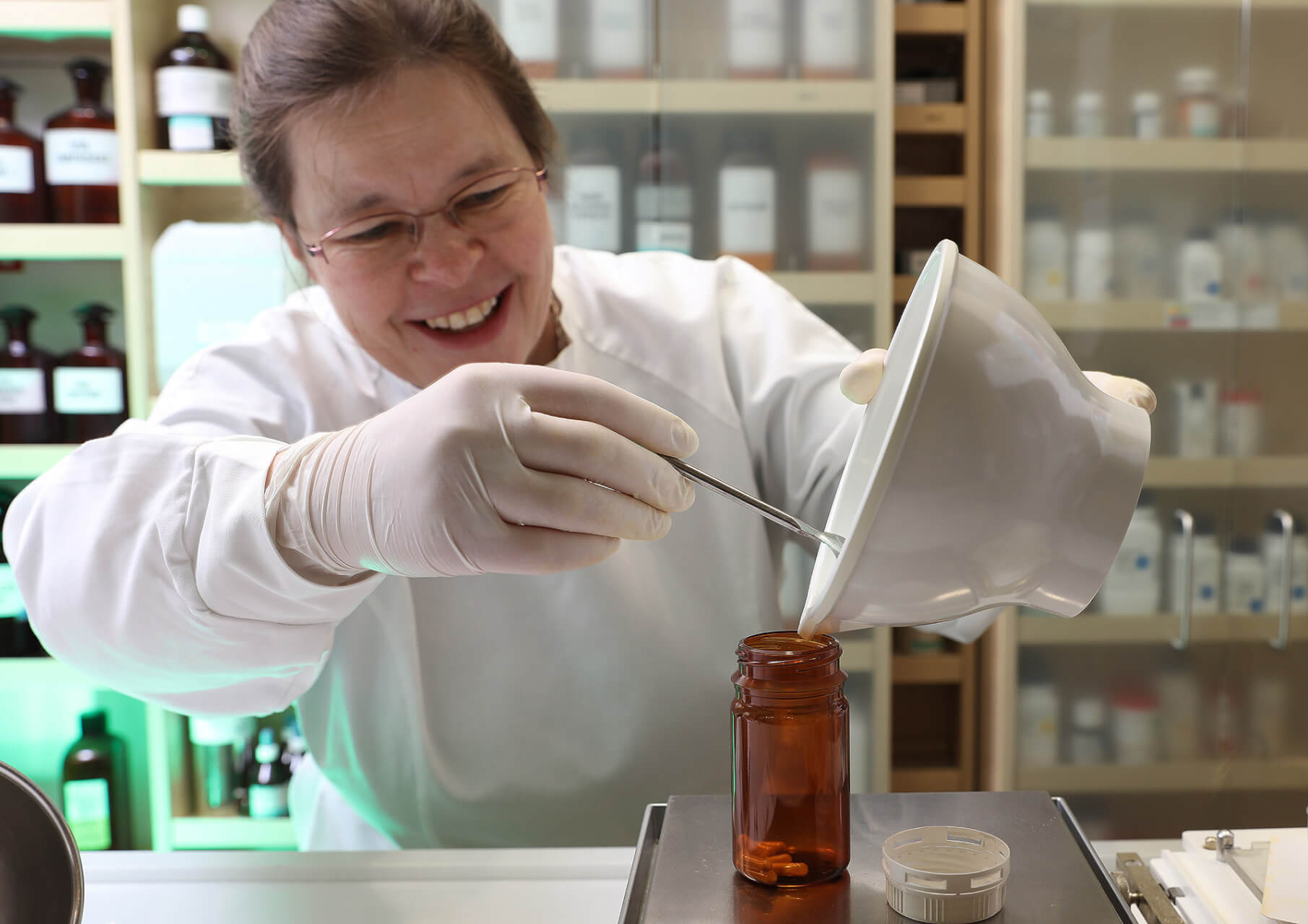 Auf ärztliche Anordnung stellen wir regelmässig Medikamente her. Seien es Präparate mit einer tieferen Dosierung als gewohnt oder weil das Produkt nicht mehr im Handel erhältlich ist. Kommen Sie mit Ihrem Rezept zu uns – wir wissen, was zu tun ist. Einige Herstellungen haben wir aufgrund häufiger Nachfrage bereits vorgefertigt in der Apotheke.