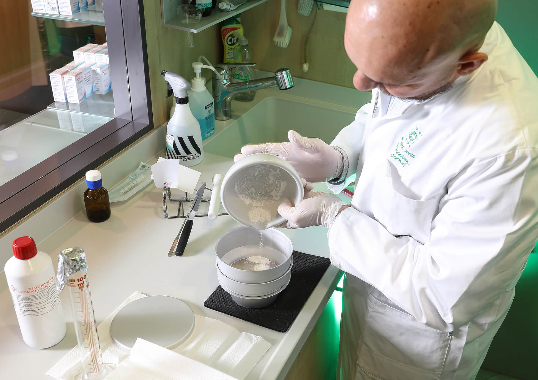 Wir reden in der Apotheke von Rezepten, dennoch heisst es nicht «man nehme» auf unseren Herstellungsprotokollen. Es entstehen spezifisch hergestellte Produkte. Kapseln, Sirup, Cremen, Suspensionen, Salben, Pasten, Elixiere und vieles mehr. Alles auf Ihre individuellen Bedürfnisse massgeschneiderte Produkte, die in unserer Apotheke innert nützlicher Frist hergestellt werden. Wir verfügen über ein grosses Lager an Grundlagen und Substanzen. Gepaart mit unserem Know-how und langjähriger Erfahrung sind wir dadurch die richtige Anlaufstelle, falls Sie kein handelsübliches Produkt benötigen.
