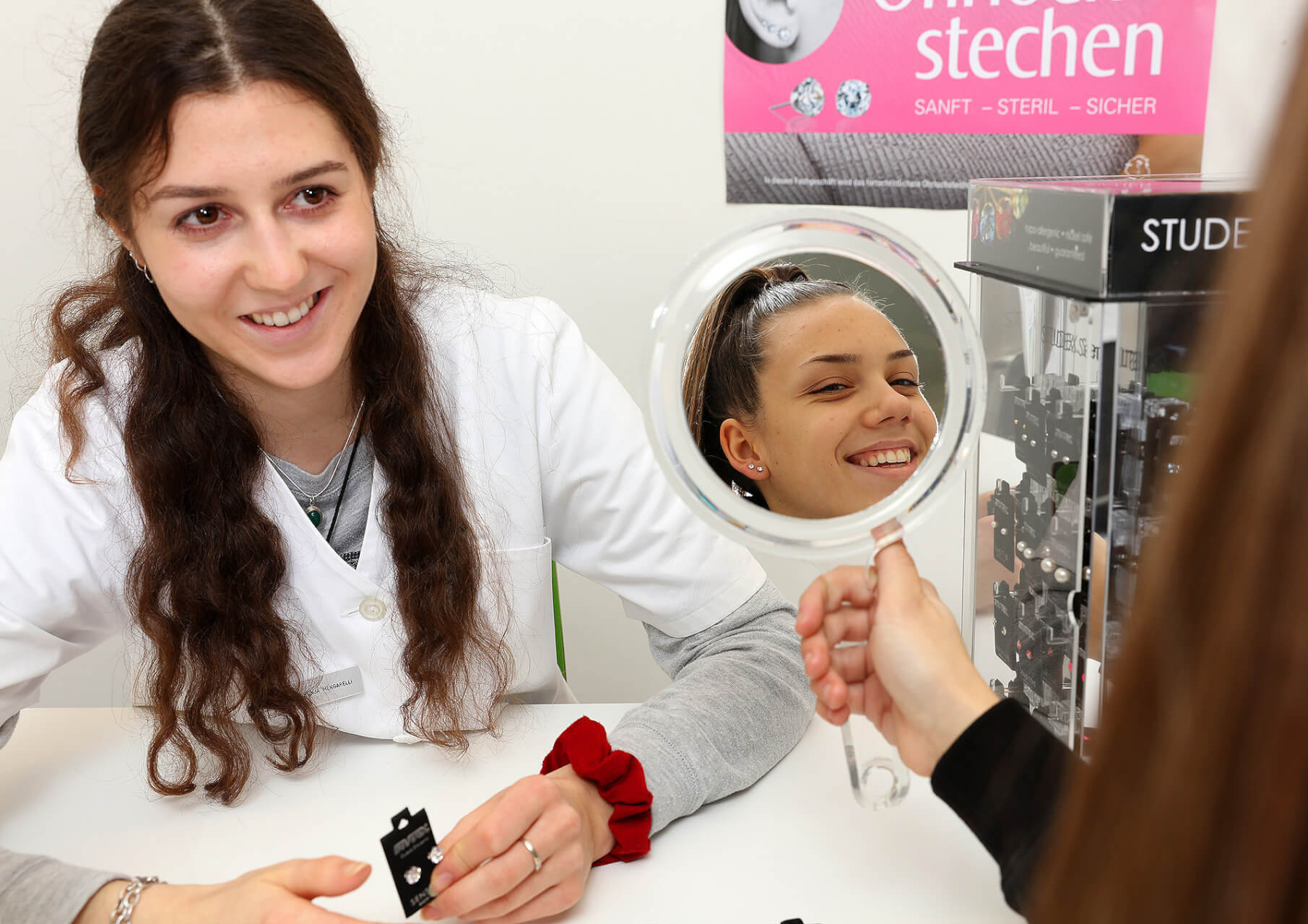 Der Stechvorgang wird mit modernen und hygienischen Ohrlochstechsystemen durchgeführt, ganz schmerz – und komplikationslos.